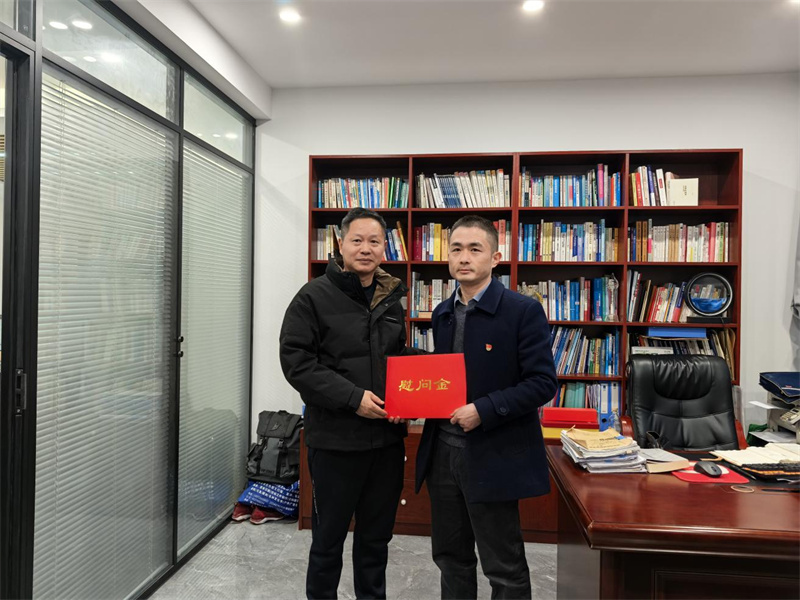 慰问组一行首先来到了湖北邦伦律师事务所,亲切慰问了刘炜律师。刘炜律师在服务大局,为困难群众和特殊群体提供公益法律服务等方面作出突出贡献,被荆门市委政法委评为2024年度“荆门政法先锋”。慰问组一行与刘炜律师亲切交谈,详细了解他的工作情况和生活状况,高度评价了刘炜律师长期以来坚持公益、勇于担当的精神风貌,并为他送上慰问金和新春祝福,以此表达对其辛勤付出的诚挚感谢与崇高敬意。刘炜律师也表示,将不忘初心,牢记使命,继续以实际行动践行律师的社会责任和职业使命,为法治中国的建设添砖加瓦。